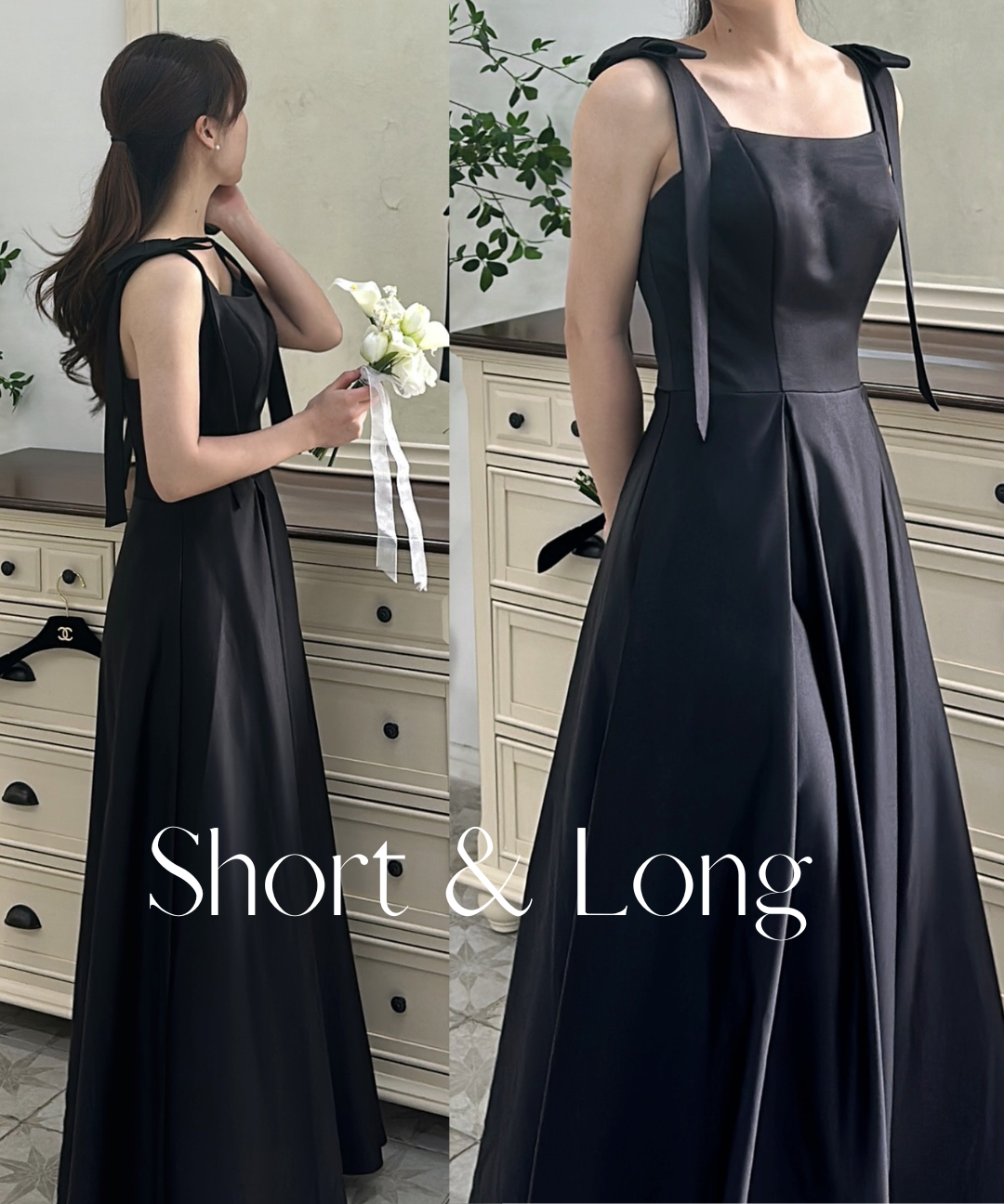 [기장선택🖤] 웨딩드레스 블랙 세틴 리본 원피스 2부 스냅 스튜디오 브라이덜샤워