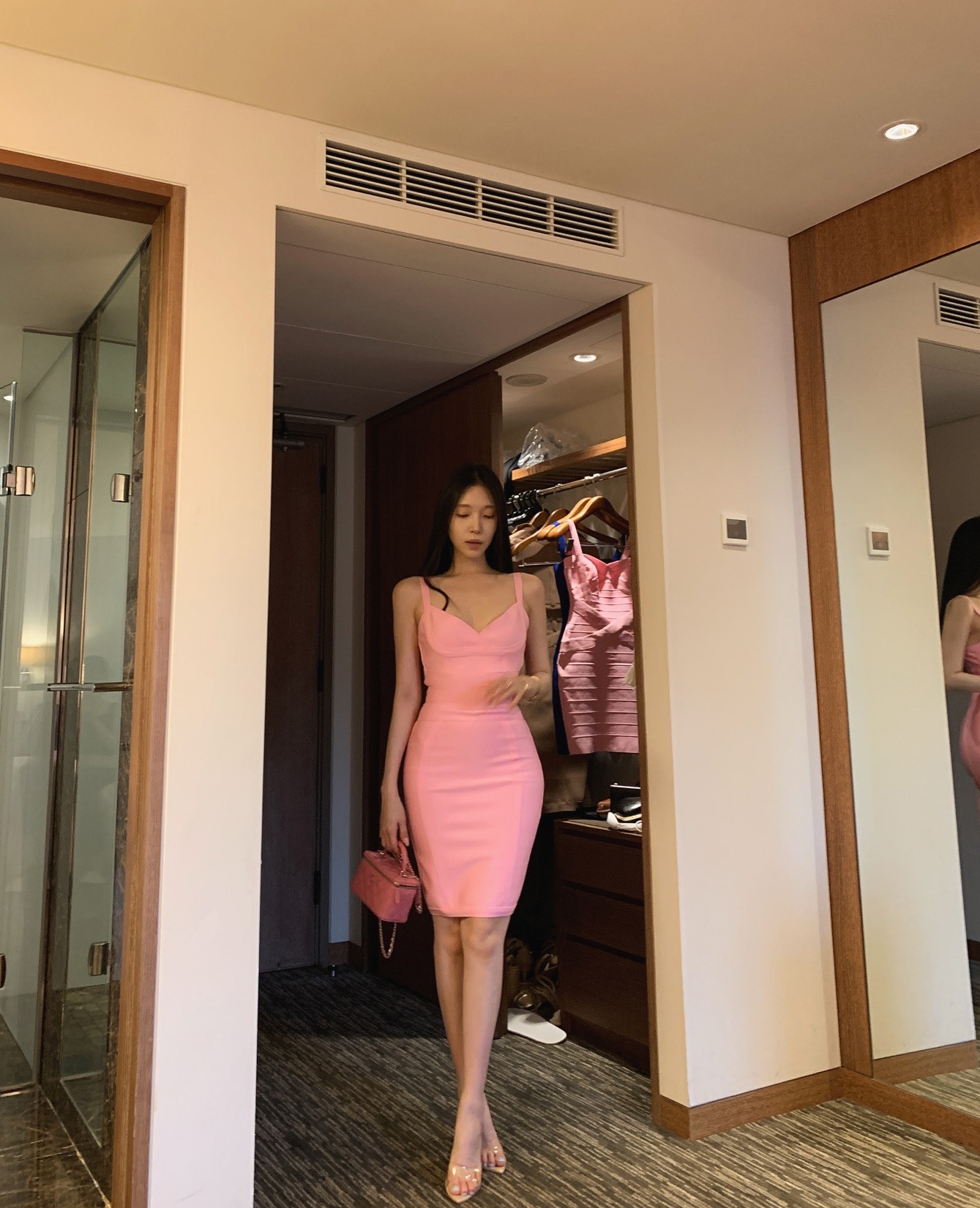 [highquality] *베르비 단독* 자체제작 몸매보정 코르셋 클래식 밴디지 미디 원피스 드레스 핑크