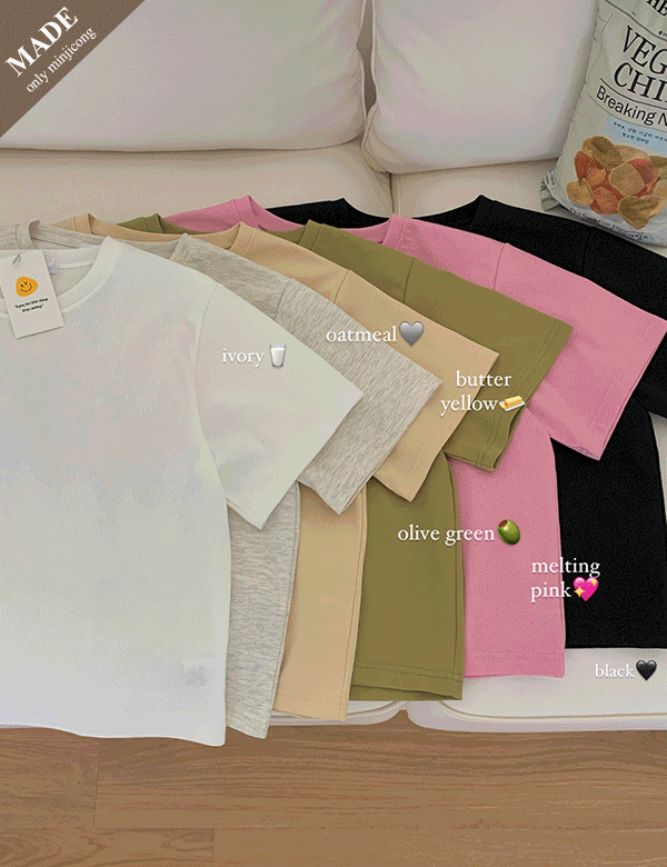 * [자체제작/세미크롭💛] MADE 탄탄 세미크롭 반팔 티셔츠 (6color)