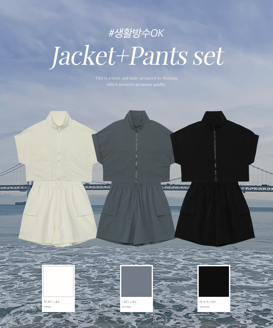트렌디카고 나일론 자켓+팬츠 세트(44~77)(투피스세트-여름자켓-여름팬츠-나일론세트-생활방수-장마룩-캐주얼룩-밴딩팬츠-크롭자켓-여름바람막이-셋업)