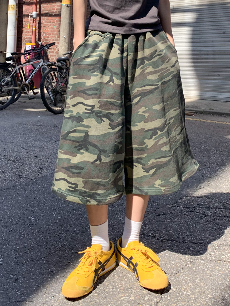 [장마룩] 버닛 밀리터리 버뮤다 밴딩 팬츠