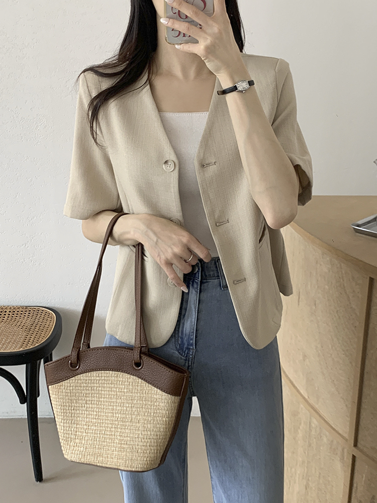 마론 린넨라이크 썸머 노카라 반팔 자켓