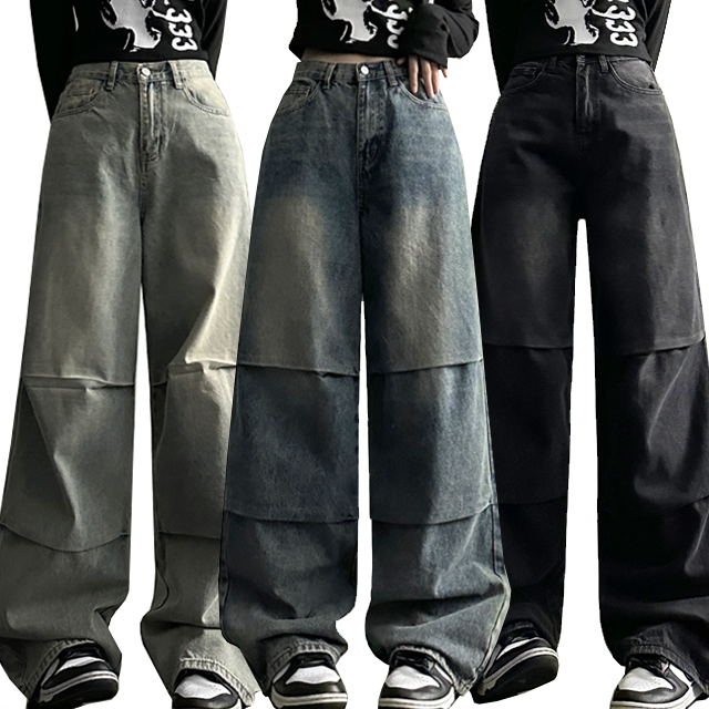 [핏보장/기장선택/숏롱] 하이웨스트 무릎 핀턱 주름 와이드핏 벌룬핏 데님 팬츠 청바지 4color