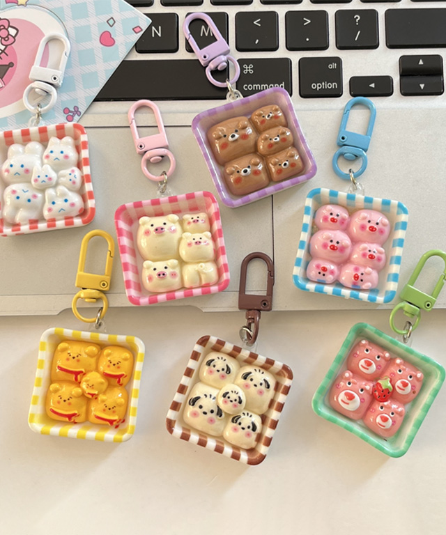 [🔥당일출고🔥] 귀여운 도시락 미니 주먹밥 키링 7color 가방 에어팟 휴대폰 열쇠고리 차키 아크릴 필통 파우치 키링