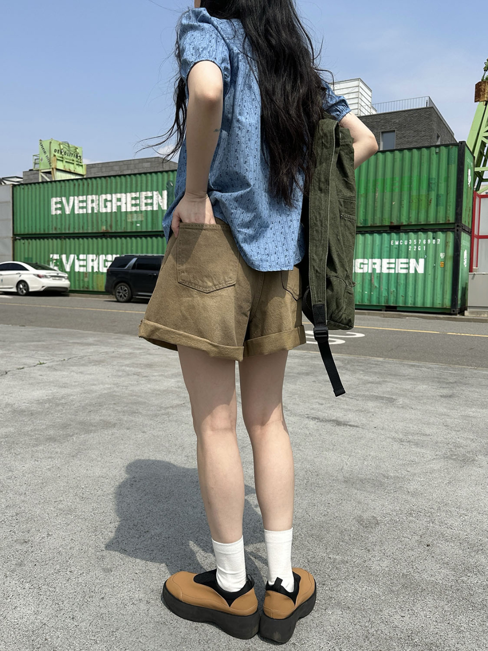 Roll-up short denim pants / 롤업 숏 데님 반바지 3부 하프팬츠
