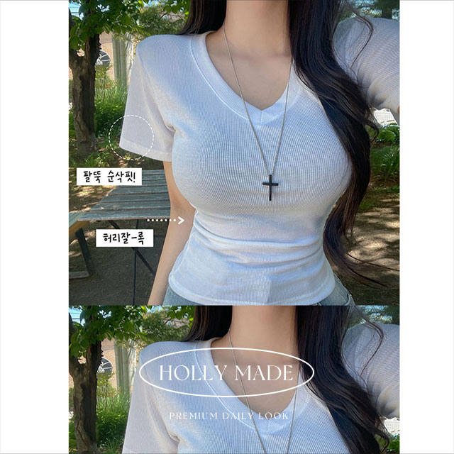 [1만장돌파🏆/MADE] 기본충실 잘록 브이넥 반팔티