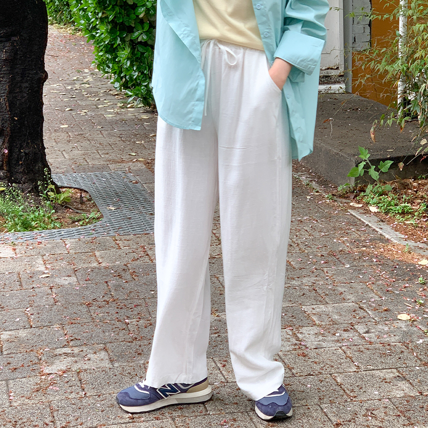 [🥽바캉스룩/린넨] 쿨린넨 와이드핏 밴딩팬츠 봄 여름 간절기 여름팬츠 봄신상 여름신상 허리밴딩 오버핏 와이드밴딩팬츠 휴양지룩 여자밴딩바지