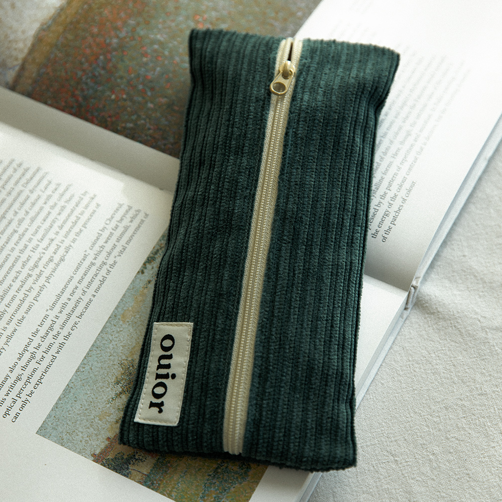 위올 플랫 펜슬케이스 - 코듀로이 미드나잇 그린(middle zipper)