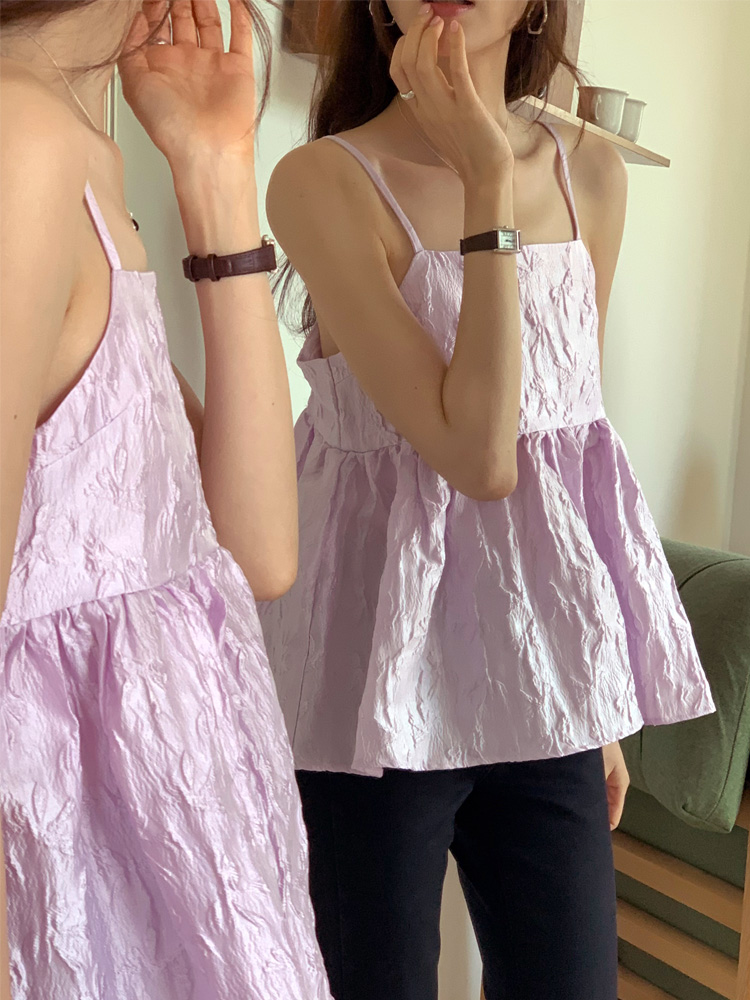 [로맨틱/입체감있는] 코이 리본 슬리브리스 블라우스 3color 뷔스티에 자가드 나시 여름 레이어드 새틴 끈나시 고급스러운 새틴나시 새틴블라우스 플레어
