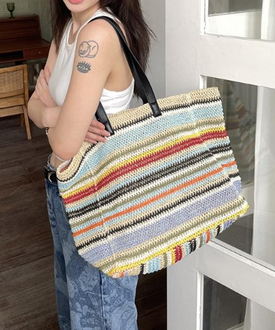 줄무늬 컬러 빅사이즈 가방 숄더 에코 백