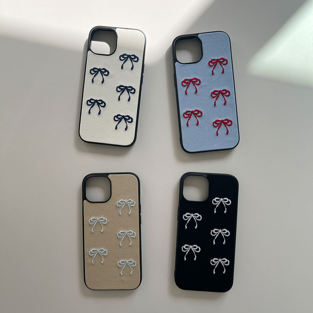 Ribbon pattern case 리본 일러스트 패브릭 자수 케이스 아이폰 갤럭시 하객룩
