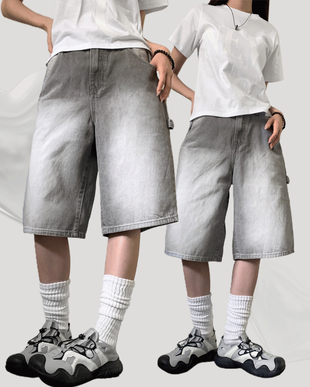 [S-2XL/2단기장] 데카 카펜터 워싱 카고 뒷밴딩 5부 버뮤다 데님 반바지 숏 팬츠