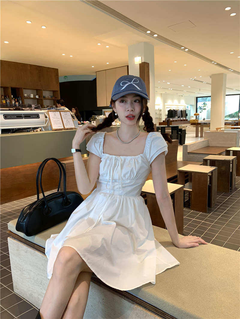 [당일출고] 낙타 여름 휴양지 반팔 스퀘어넥 바스락원피스 화이트 동남아 휴가 키작녀 플레어 원피스