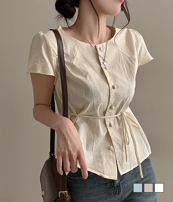 [무료배송] 수지 허리 끈 린넨 반팔 미디 블라우스