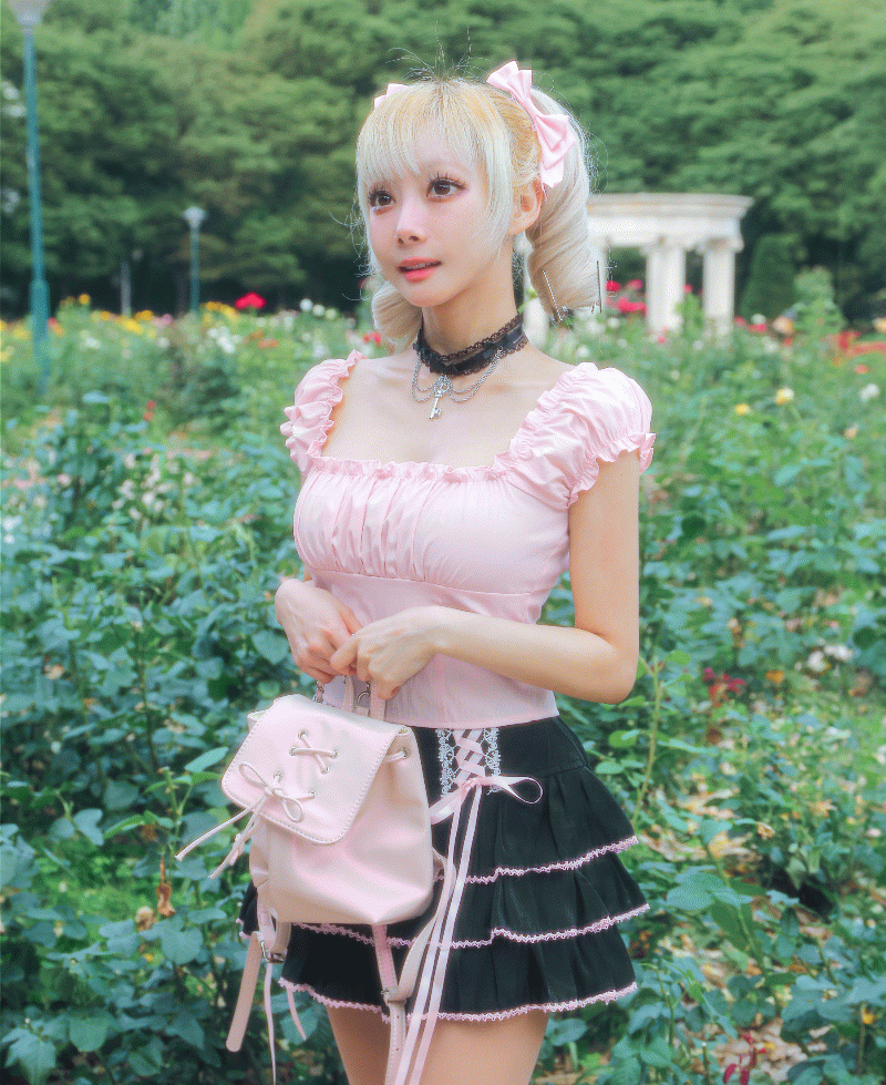 럭키비키 코르셋 양지뢰 캉캉 프릴 스커트 (여름치마,엔젤코어,하늘색,양산형,지뢰계,서브컬쳐,코스프레,멘헤라,아이돌룩,댄스의상,하라주쿠패션)