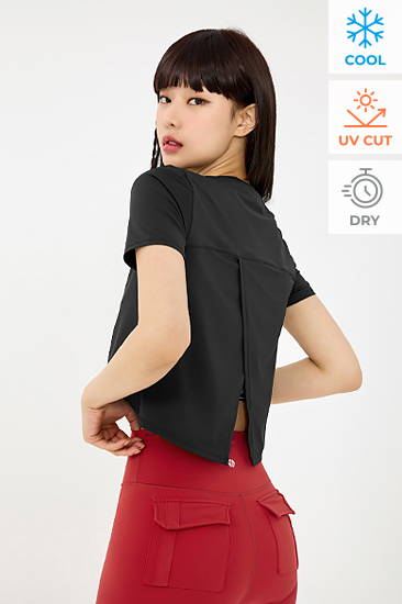 아이스페더 백슬릿 크롭 숏슬리브 2.0 블랙
