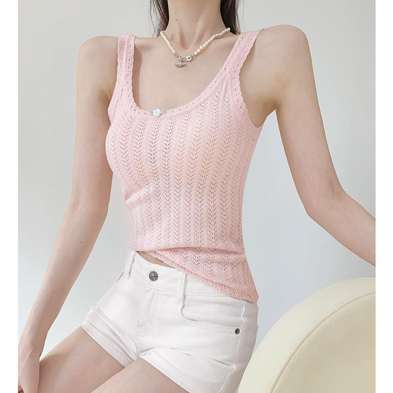 나시 니트 펀칭 플라워 민소매 연핑크 여름 슬리브리스
