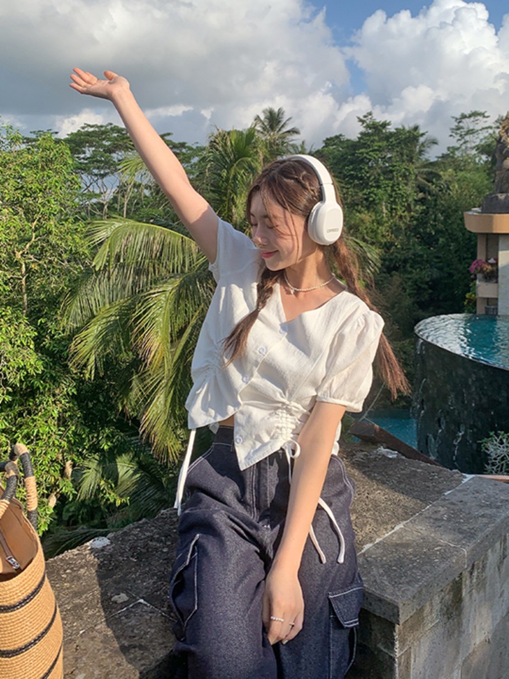 브논지론 코튼 레이스 셔링 블라우스( 여름-데일리룩-데이트룩-출근룩-오피스룩-하객룩-러블리룩-캠퍼스룩-모던룩-여행룩-휴양지룩-발레코어룩-빅사이즈-120사이즈-자체제작-여름블라우스-반팔블라우스-여름하객룩 )