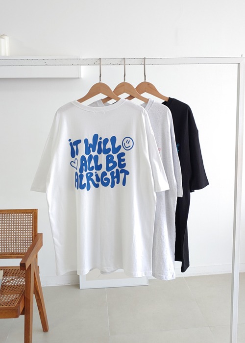 올라잇반팔 레터링 스마일 프린트 박스반팔티