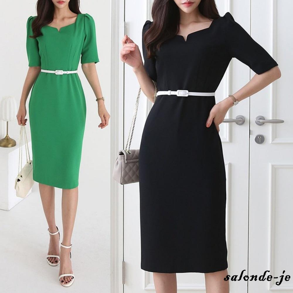7월 결혼식 하객룩 여름 하객원피스 여성 정장원피스 벨트 초록색