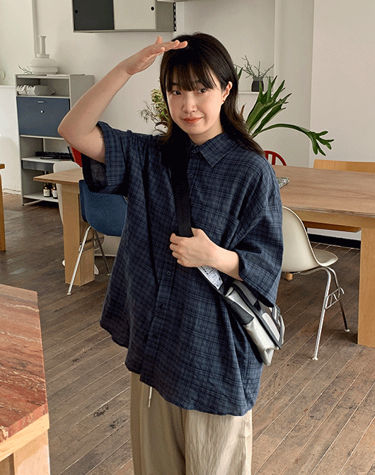 [unisex] 아이토 체크 오버 반팔 셔츠 (2color)