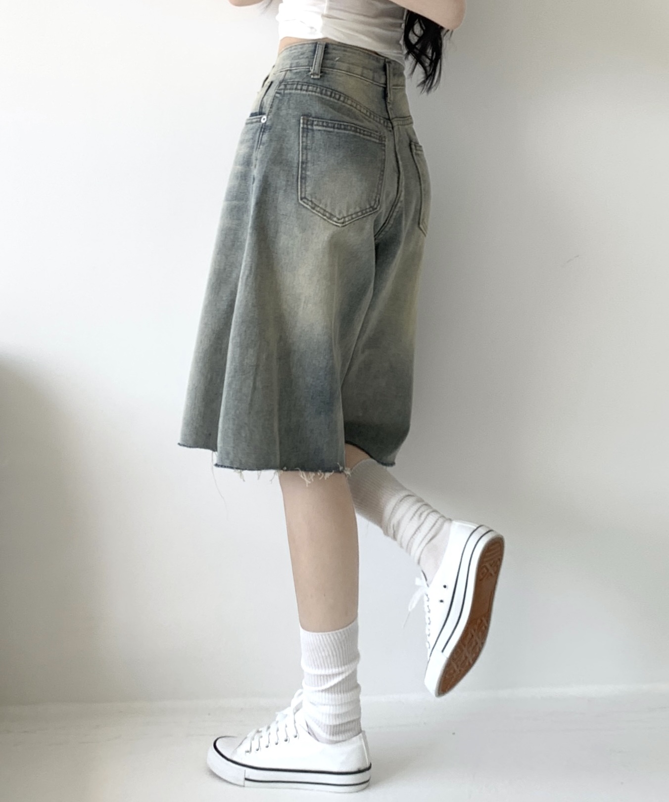[인기버뮤다💕/~XL] 캐스트 빈티지 샌드 워싱 컷팅 버뮤다 하프 5부 숏 데님 팬츠 청바지/반바지/밑단컷팅/셀프수선/버뮤다청바지/청바지코디/7부반바지