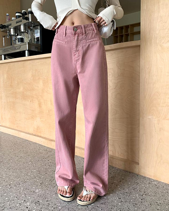 [끌앤끌] 더티 핑크 하이웨스트 데님 일자 와이드 팬츠