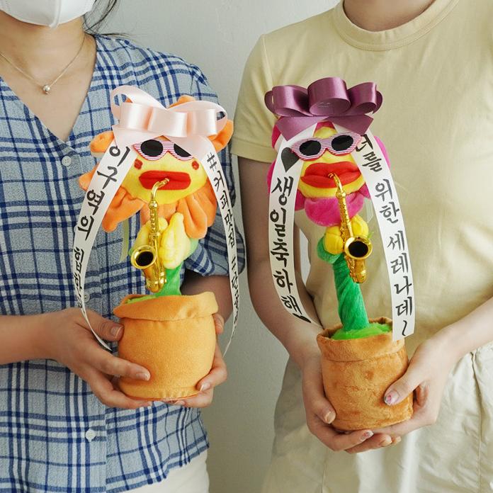 웃긴 춤추는 해바라기 인형 화환 - 노래하는 웃긴 춤추는인형 움직이는인형 개업화환 개업선물 축하 생일 선물 미니화환 신박한선물 화환선물