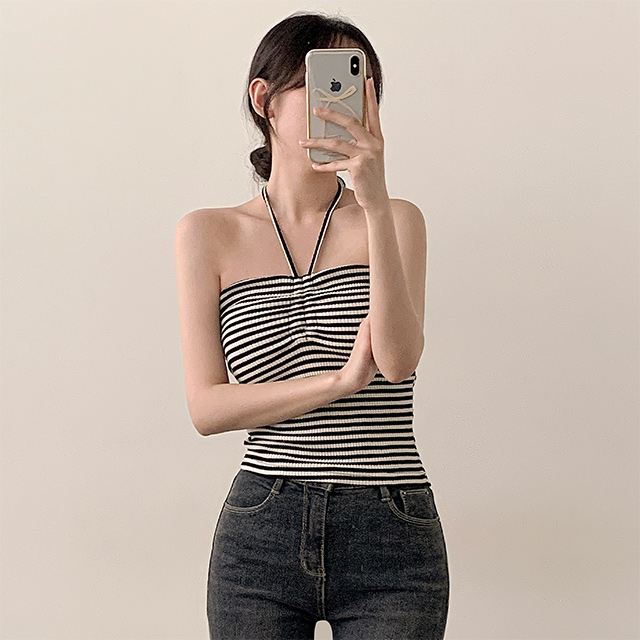 [휴양지룩/2way] 메이 단가라 홀터넥 세미 크롭 오프숄더 탑 나시 (2color)