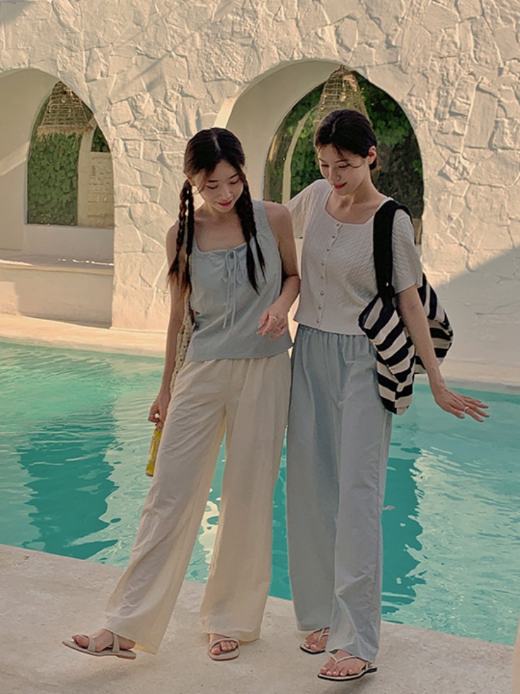 [3천장 돌파✨][숏/롱][-5˚C쿨링감] 시얼브 썸머 바스락 밴딩 와이드 팬츠 ( 여름-데일리룩-캐주얼룩-데이트룩-출근룩-공항룩-바캉스룩-휴가룩-여행룩-빅사이즈-38사이즈-자체제작-깔끔한-편한-시원한 )