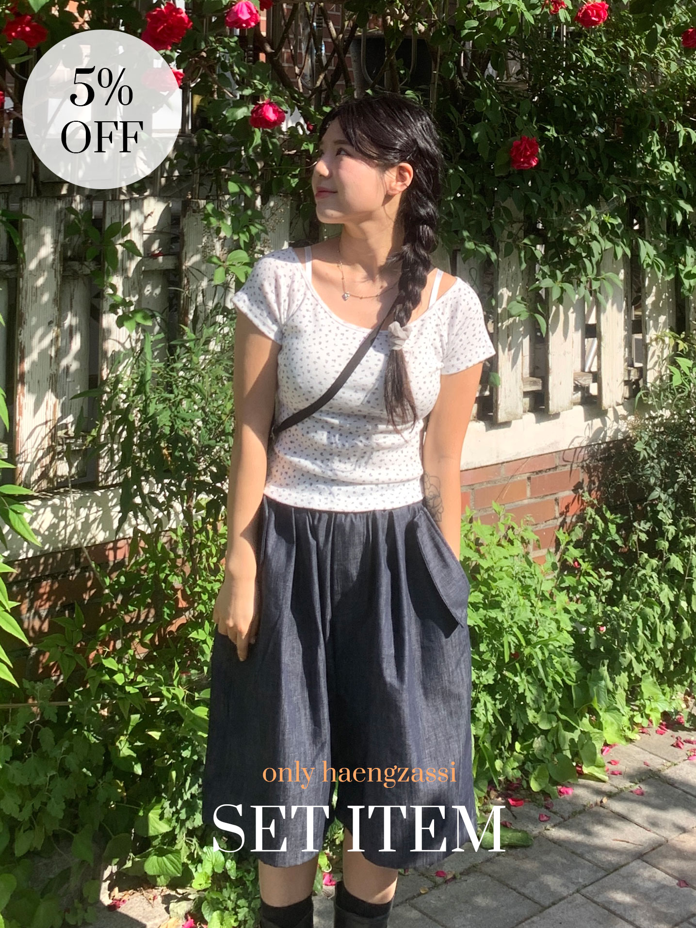 [세트] 리쉬 플라워 오프 티 (아이보리) + 투브 생지 버뮤다 팬츠 (중청)