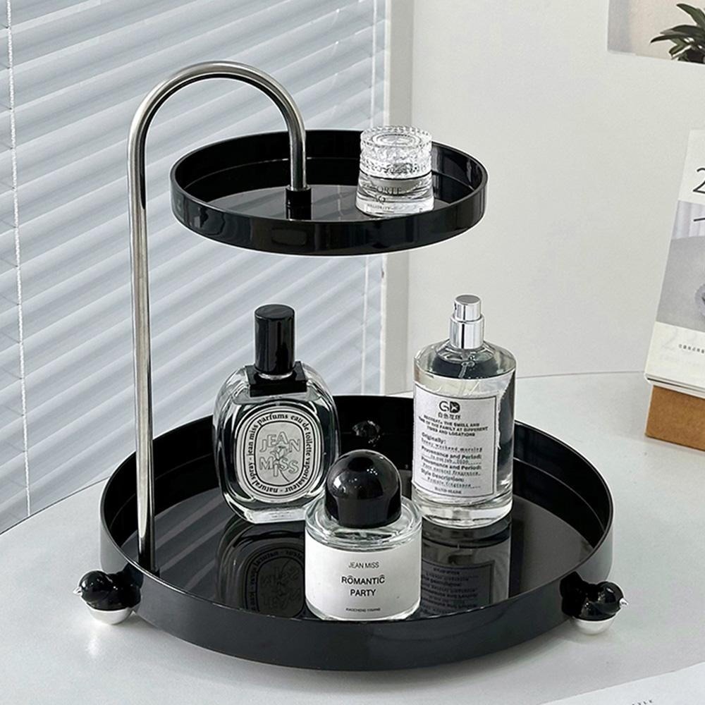 [✨갓성비✨]회전 2단 오브제 트레이 원형 악세사리 화장품 선반 앵글 수납함 인테리어소품 소품샵 틈새 미니 팬트리 수납정리함 수납장 실버 수납 정리 당일 모듈선반 3colors