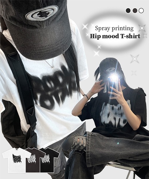 [Hip🖤박스티] 스트릿 스프레이 프린팅 레터링 오버핏 루즈핏 롱 반팔 티셔츠 반팔티 t (3color)