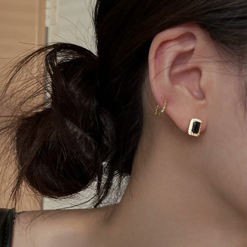큐빅 블랙 스퀘어 스톤 귀걸이
