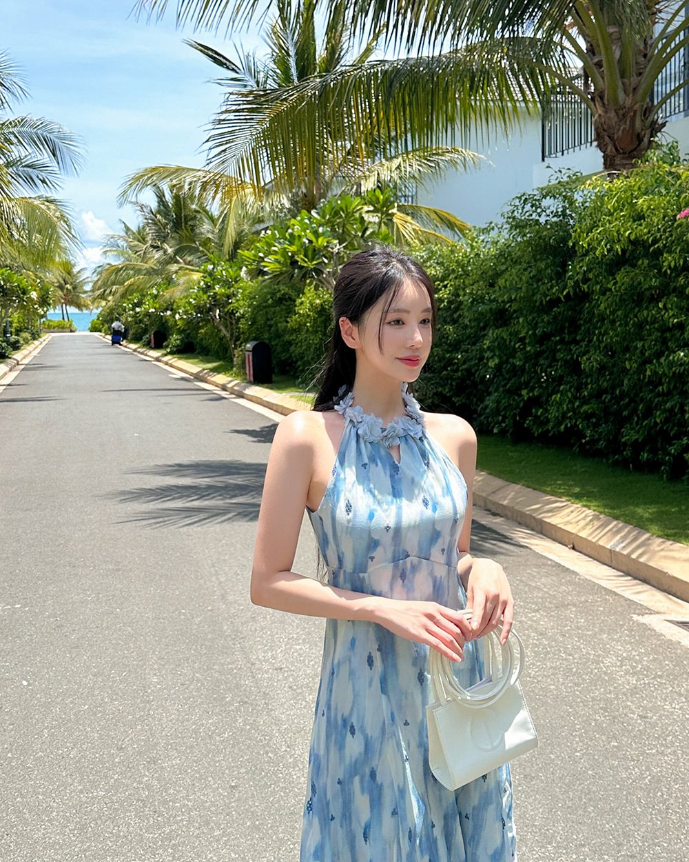 [오늘출발] 아들린 플라워 홀터넥 나시 원피스