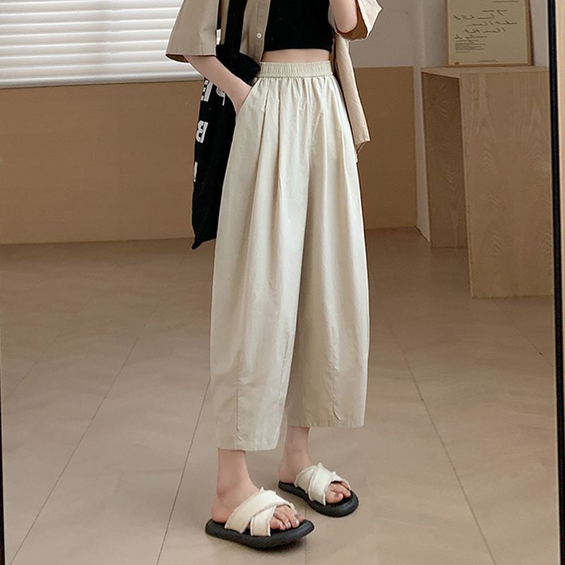 스타일아유 허리밴딩 날씬해 보이는 배기바지 캐주얼 키작녀 9부 워싱 심플 와이드팬츠 LP0741