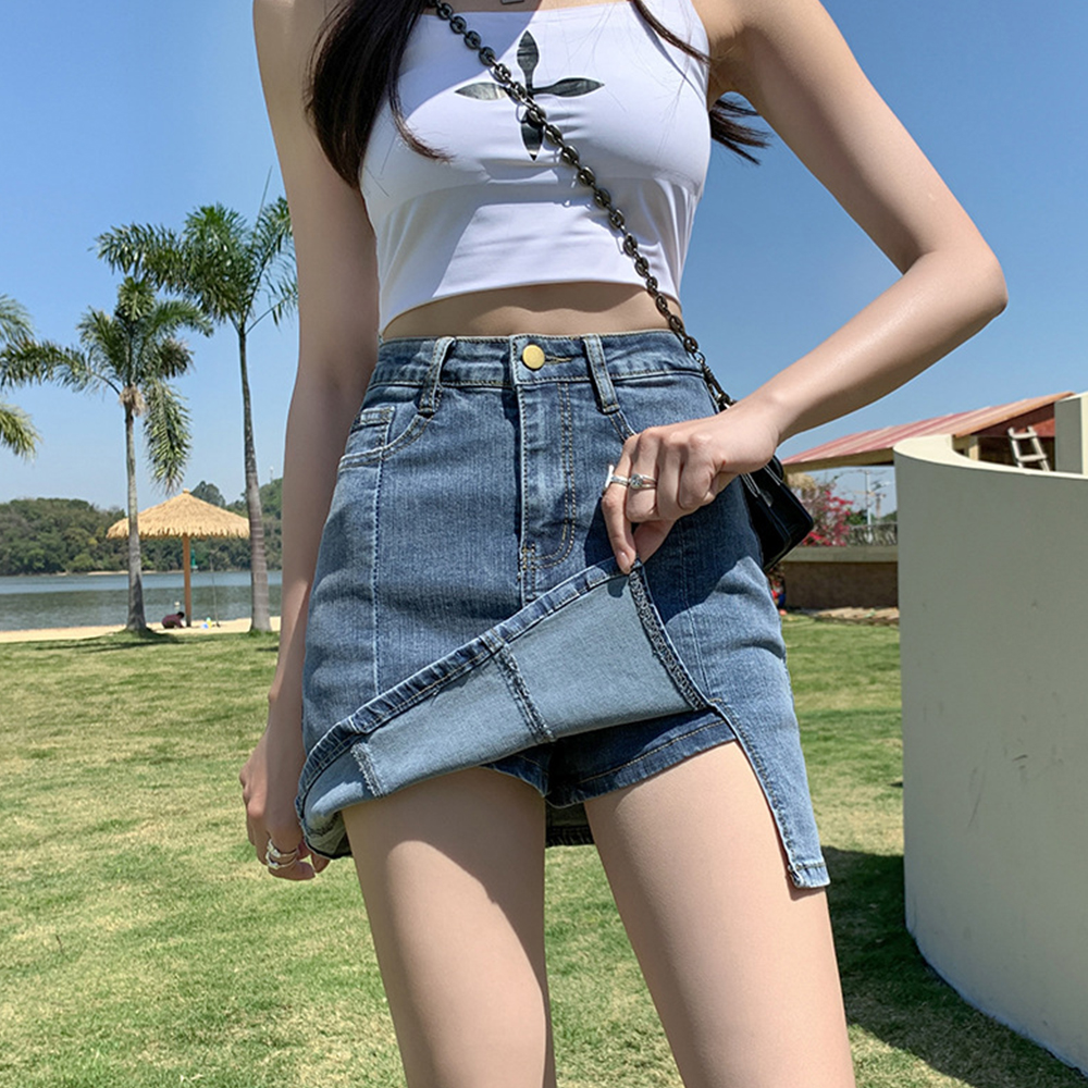 [적극추천🌼/MD PICK] 여성 청치마바지 사선트임 데일리룩