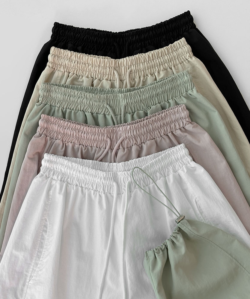 나일론 바스락 여름 밴딩 와이드 조거 팬츠 긴 바지