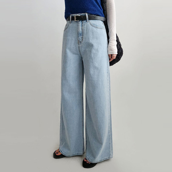 올댓 하이웨스트 연청 플레어핏 와이드 청바지