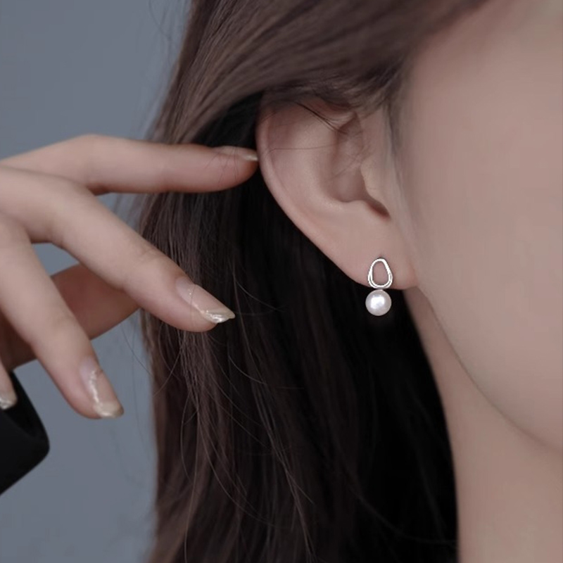 [당일출고] 드롭 진주 비정형 타원 써클 라인 팬던트 스터드 여성 귀걸이 [실버] N008