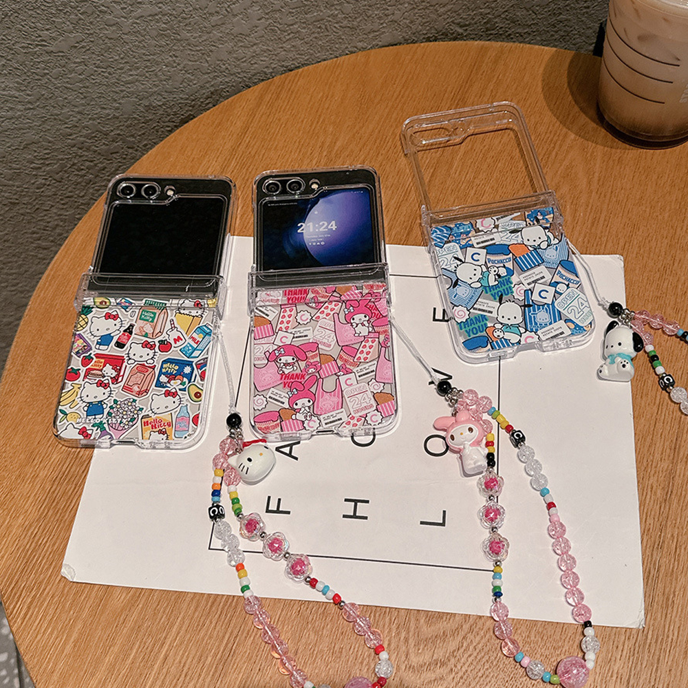 갤럭시 Z 플립5 플립4 플립3 제트 FLIP 큐티 캐릭터 패턴 스티커 힌지 보호 인형 스트랩 핸드폰 케이스