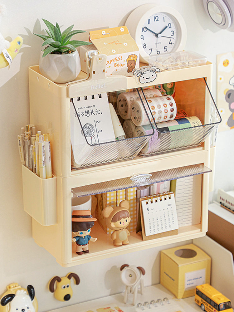 [💛정리꿀템💛]감성 버터 데스크 정리함 책상정리 책상꾸미기 필기구 문구 보관함 데스크테리어 오픈형 수납함 벽걸이가능 다꾸용품 보관 펜홀더 연필꽂이 마테정리