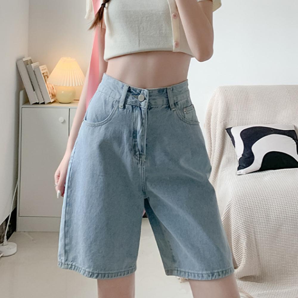 더벳스 여성 클래식 연청 데님 와이드 5부 반바지