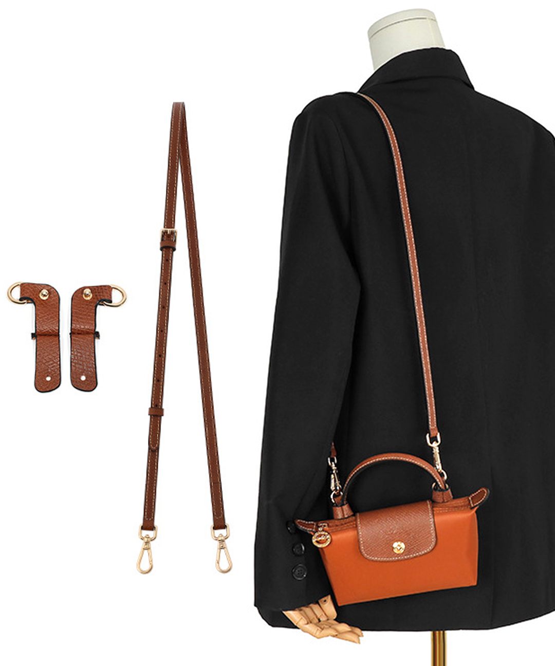 롱샴 르 플리아쥬 호환 가방끈 소가죽 미니백 파우치 리폼 스트랩 크로스끈