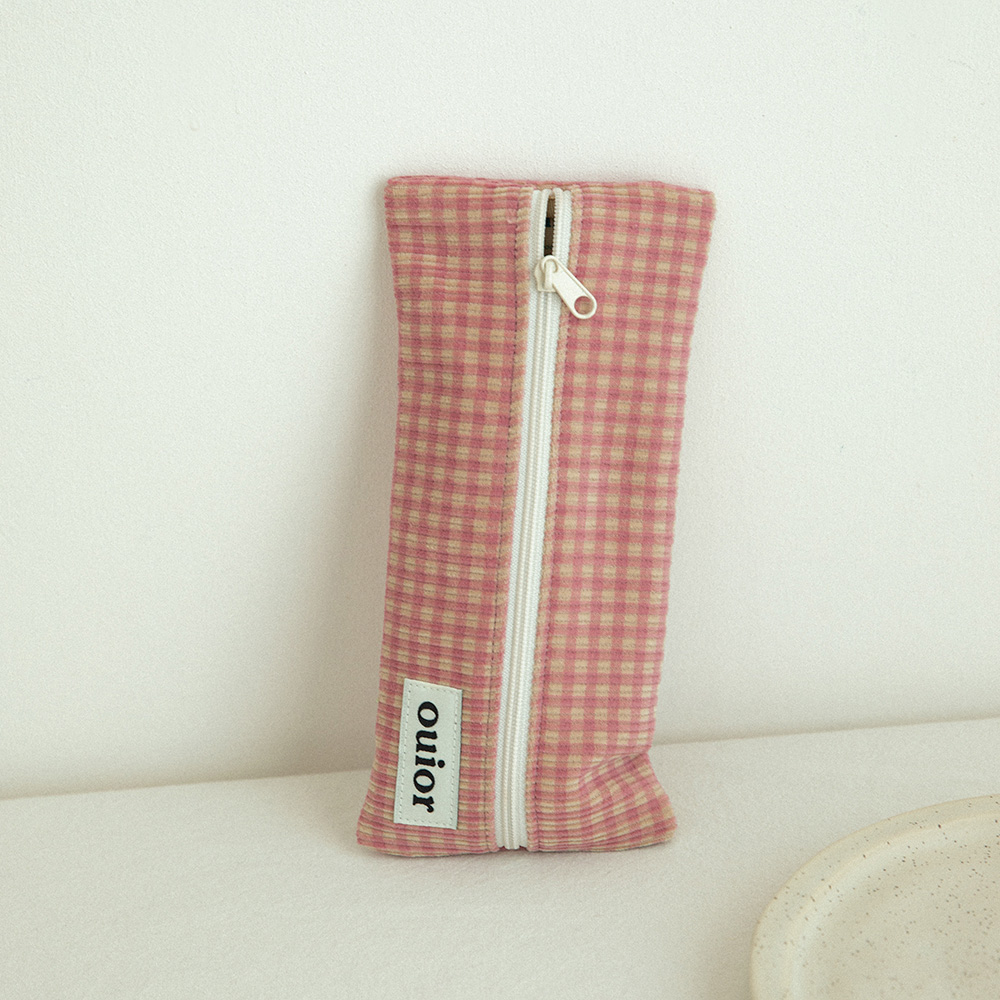 위올 플랫 펜슬케이스 - 코듀로이 로즈 체크(middle zipper)