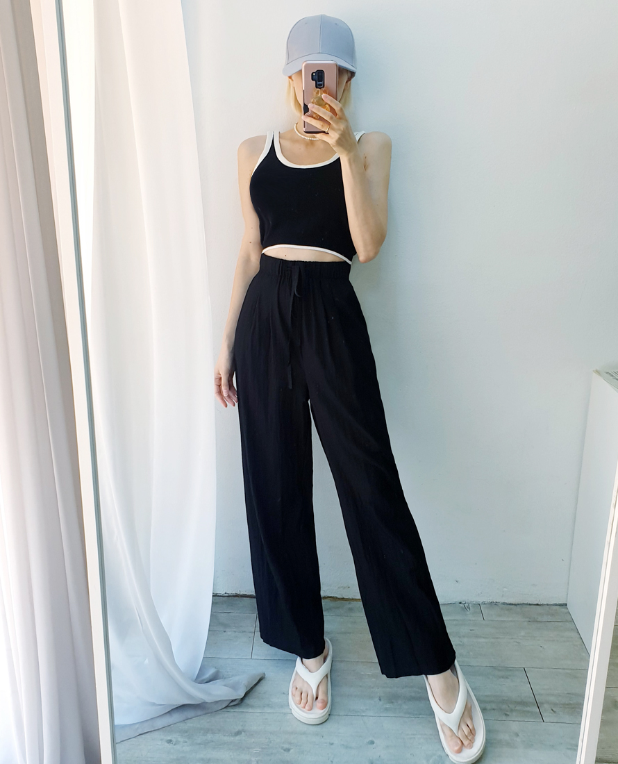[키작녀무료길이수선] 루델 플리츠 주름 허리밴딩 와이드 나일론 슬랙스