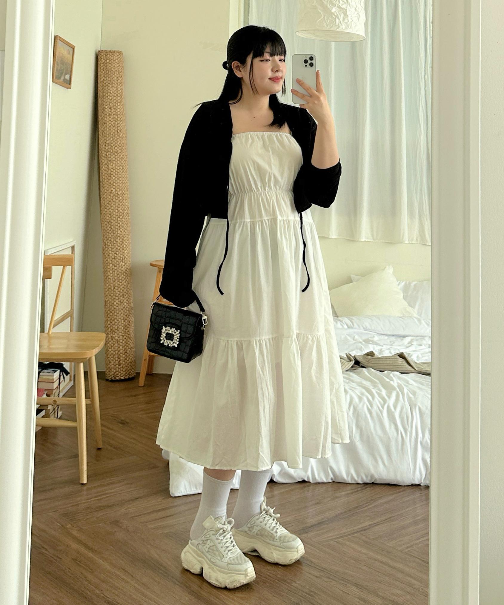 [빅사이즈/체형보정✨] 퐁당 튜브탑 바캉스 밴딩 플레어 A라인 민소매 뷔스티에 원피스 미니 롱 버전
