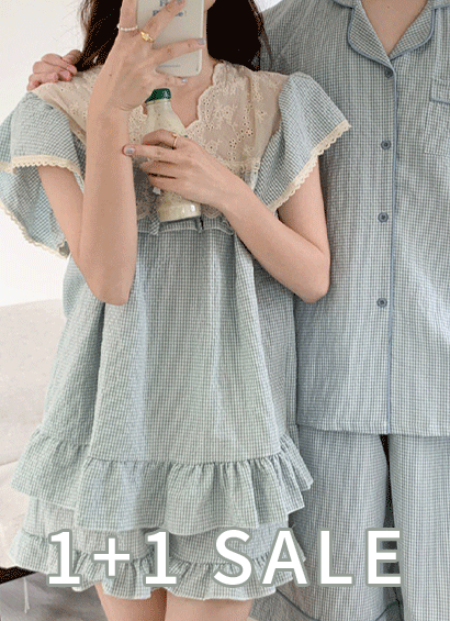 [1+1할인] 테이크잇 깅엄체크 - 여름반팔 커플파자마세트