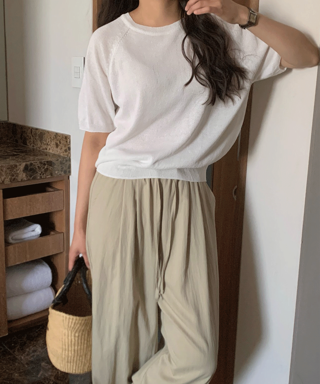 여름 썸머 네추럴 린넨 새들 반팔 니트