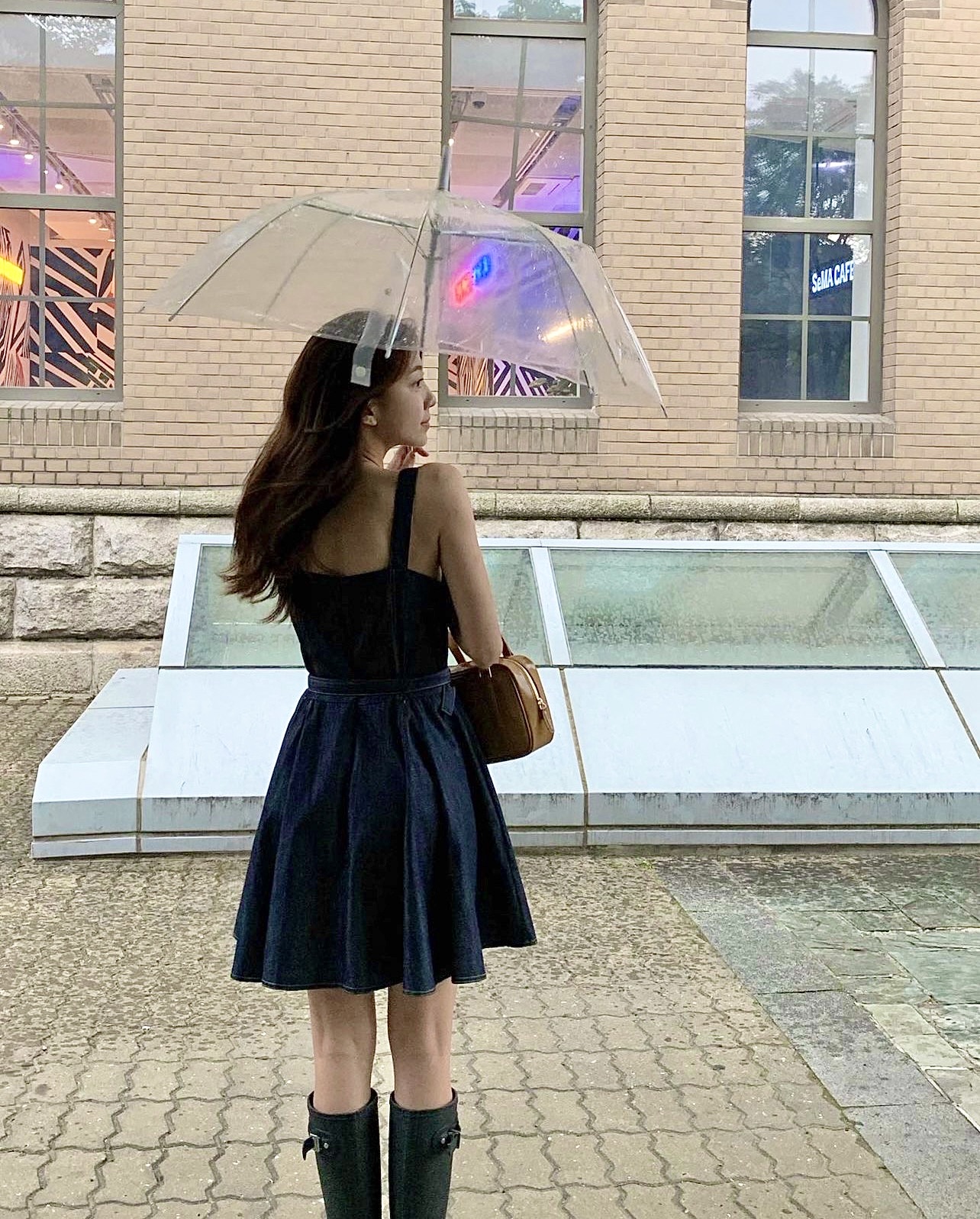 [2color] 아일렛 스티치 버클 벨트 끈 나시 생지 데님 플레어 미니 원피스 청치마 뷔스티에